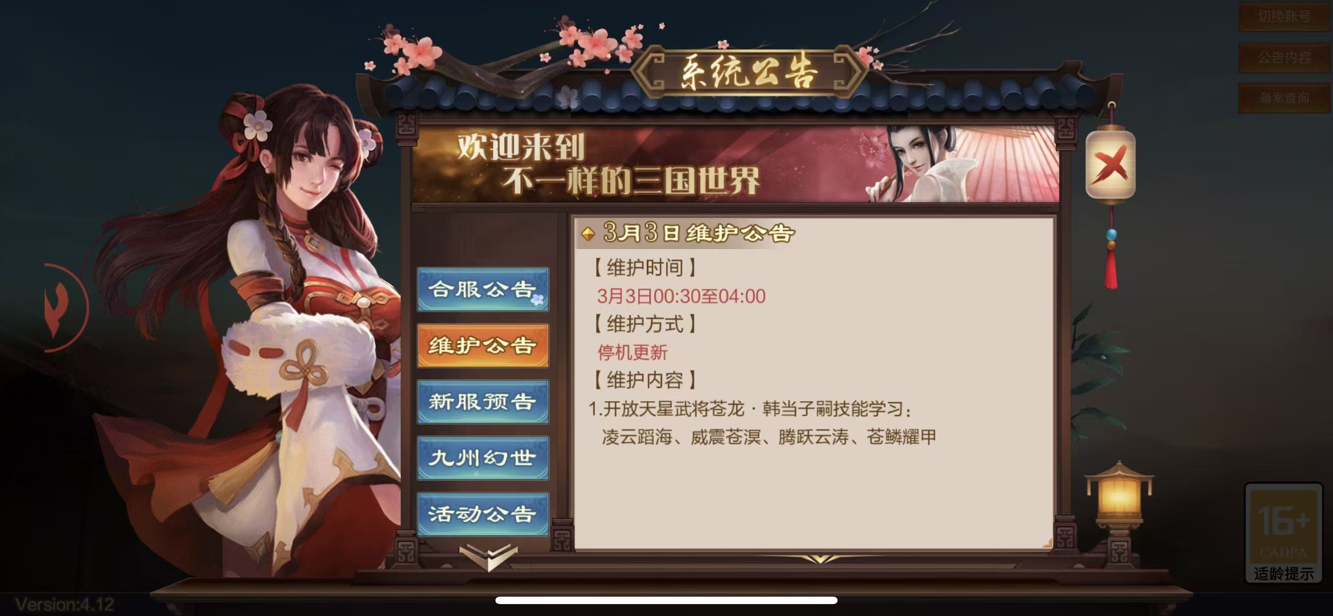 《谋天下》手游3月3日维护公告